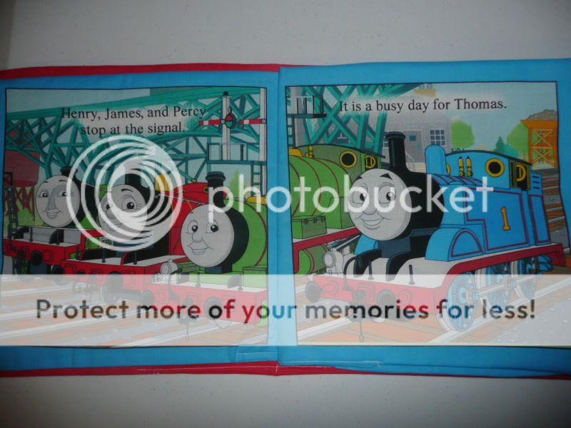 Well imagine my suprise and joy when I was digging through fabric at Wal-Mart (I know, bad, bad, bad) and I stubmled across a Thomas the Tank Engine fabric book.